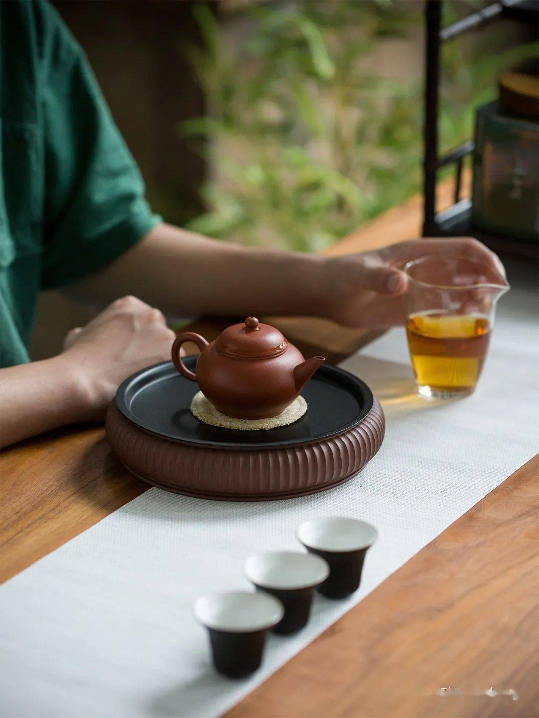 至于搭配茶席壶承的选择准绳,则无定势,可能让茶席的主次相闭更明晰,更好地发扬出茶席中央,从而提拔茶席的总体美感,便于驾轻就熟的沏茶为主。